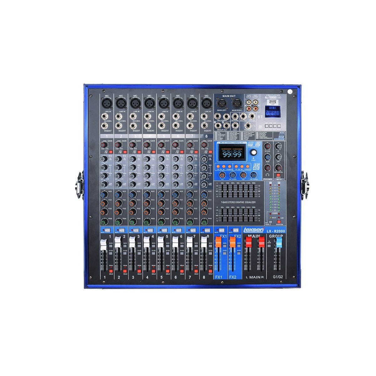 La Power Consola Amplificada Lexsen LXR2000 combina mezclador y amplificador en un solo equipo, ofreciendo una solución completa, potente y confiable para sonido en vivo, eventos, iglesias, bandas y sistemas portátiles. Con múltiples canales, ecualización precisa, efectos digitales integrados y una potencia estable, entrega un audio claro, definido y profesional. Su construcción robusta y diseño portátil permiten transportarla y operarla con facilidad, convirtiéndola en una herramienta imprescindible para técnicos de sonido y músicos que requieren rendimiento y versatilidad.